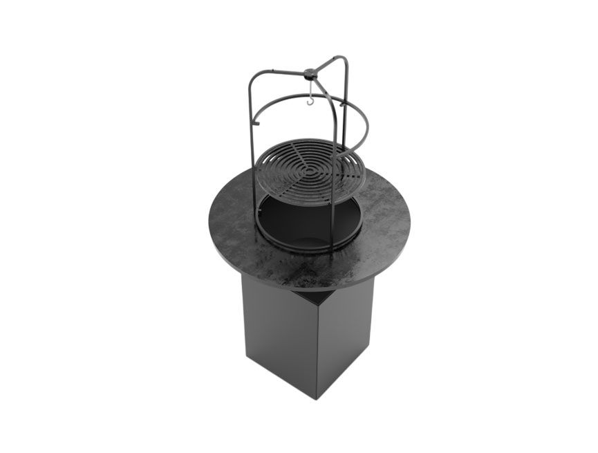L'autre côté de la plaque est nervuré et peut être utilisé comme plaque à griller. Le four à pizza OFYR est disponible pour les modèles 85 et 100. Seul le trépied est différent.